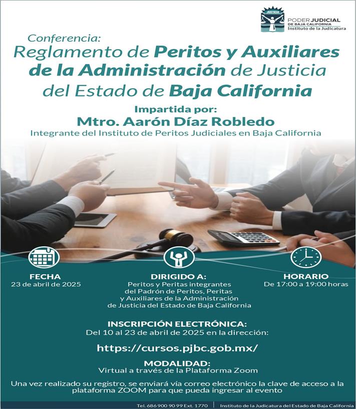 Inscripcion: Del 10 al 23 de abril en https://cursos.pjbc.gob.mx/